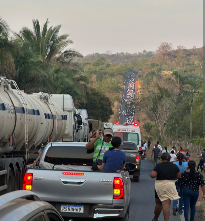 Fiéis partem da Igreja de São Francisco em Romaria de Nossa Senhora Aparecida rumo ao Povoado Caminho Velho, em São João dos Patos