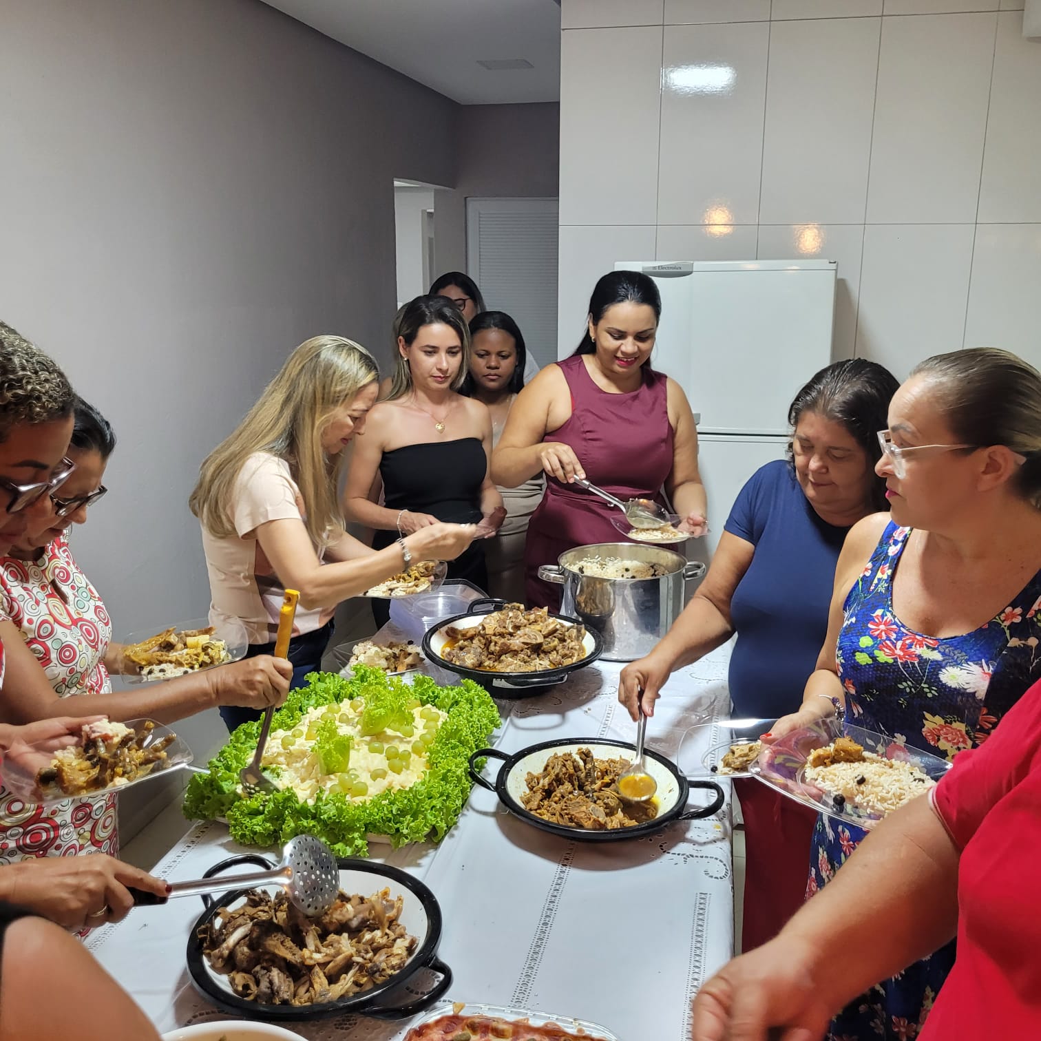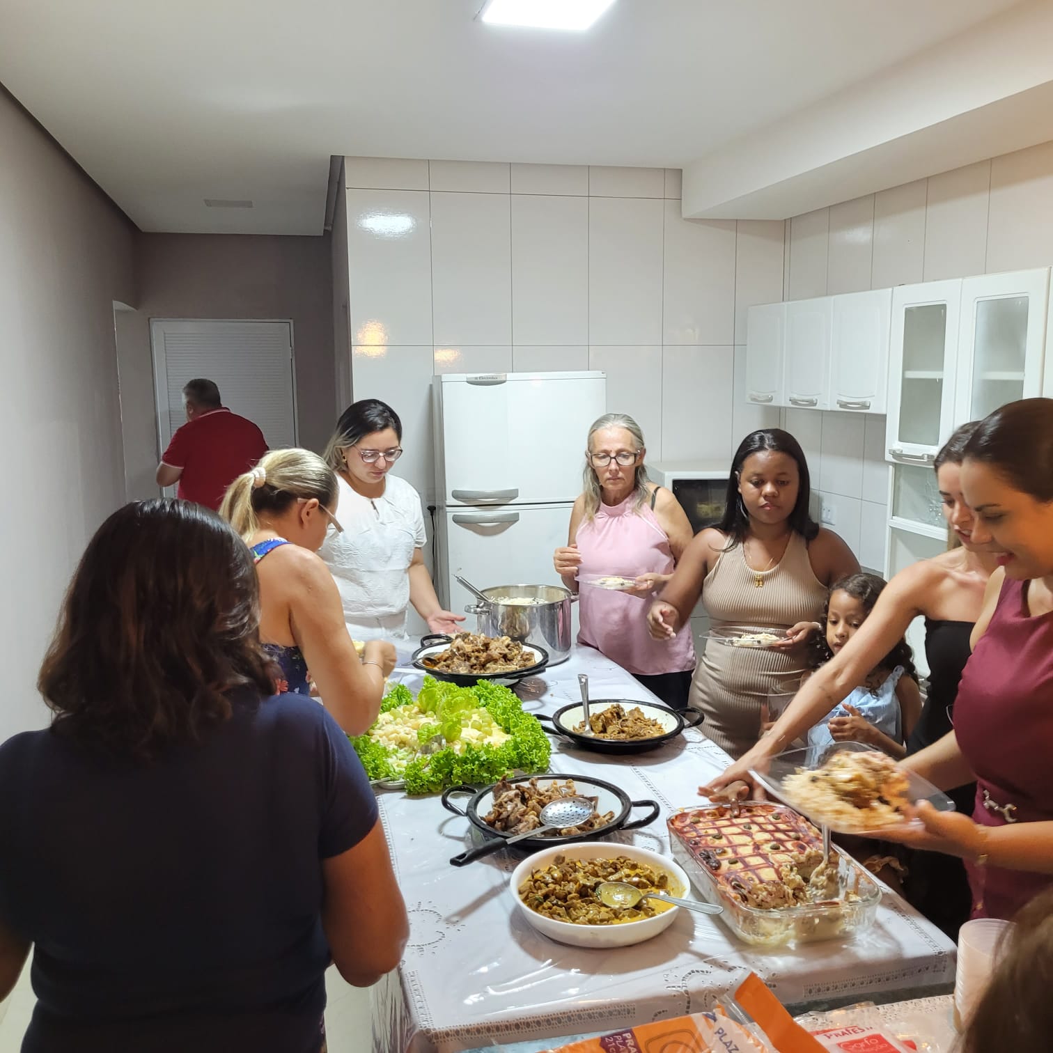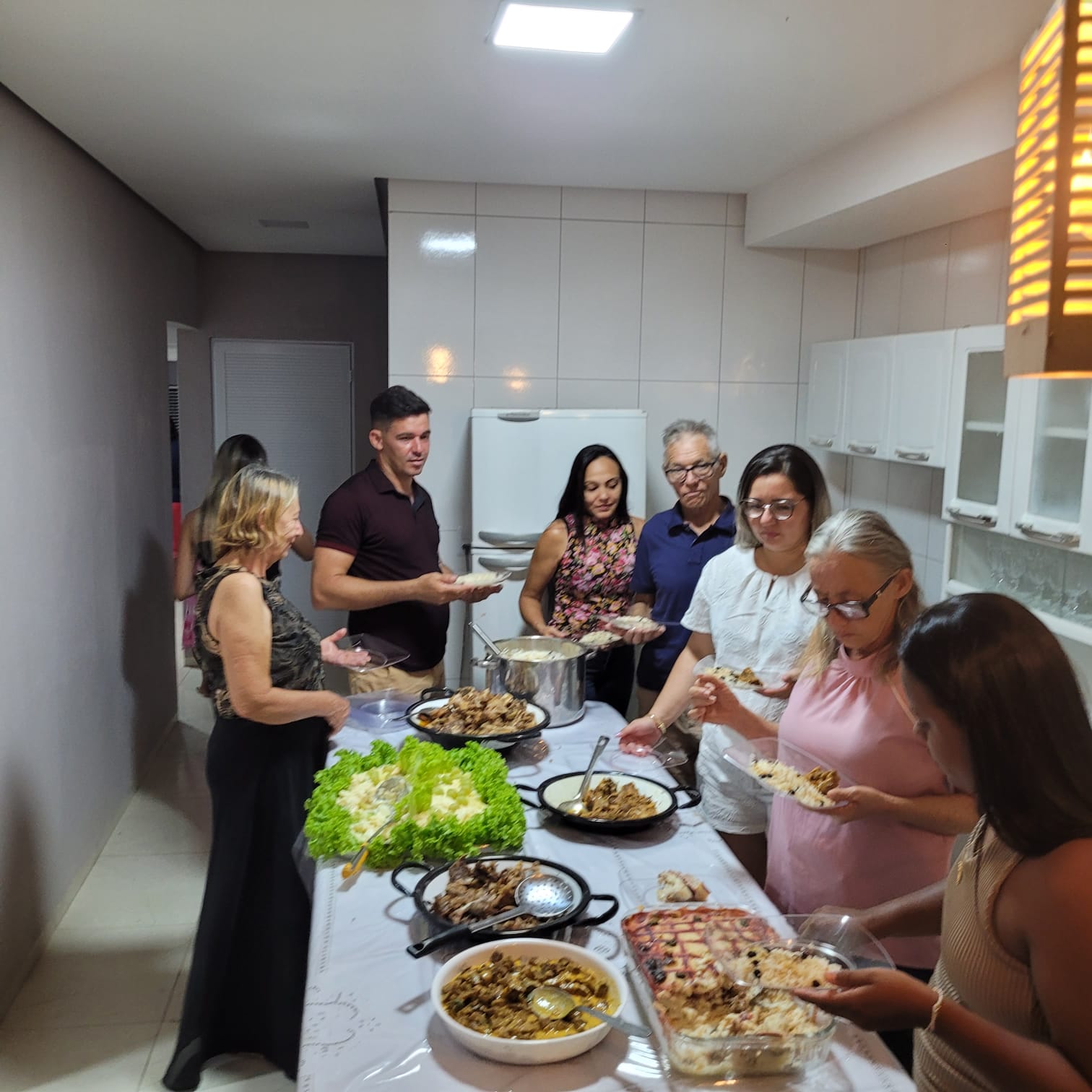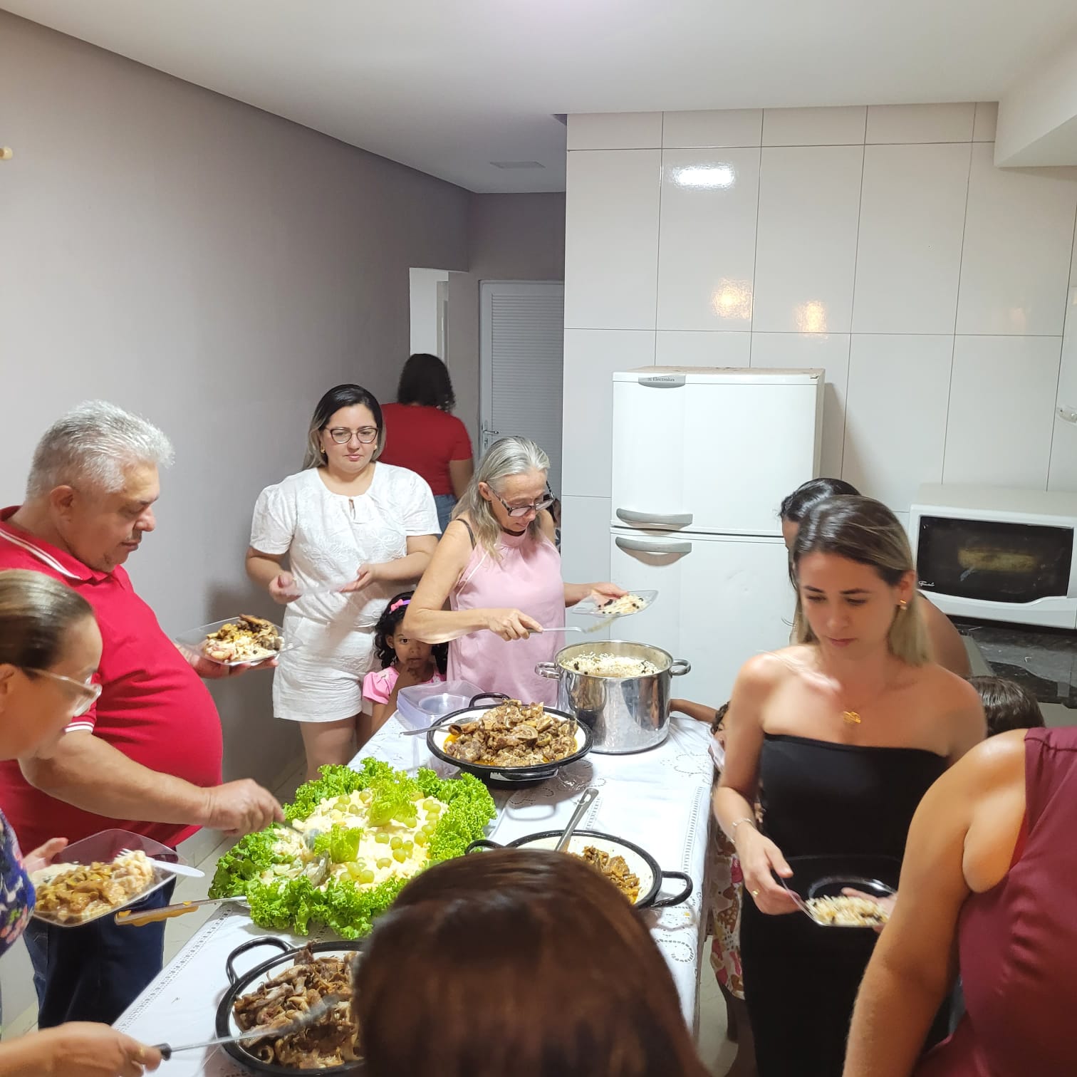 Na oportunidade, também foi celebrado o aniversário de Maria das Dores, que compareceu ao encontro acompanhada de seu esposo, Belchior, tornando a confraternização ainda mais significativa e alegre para todos os presentes.