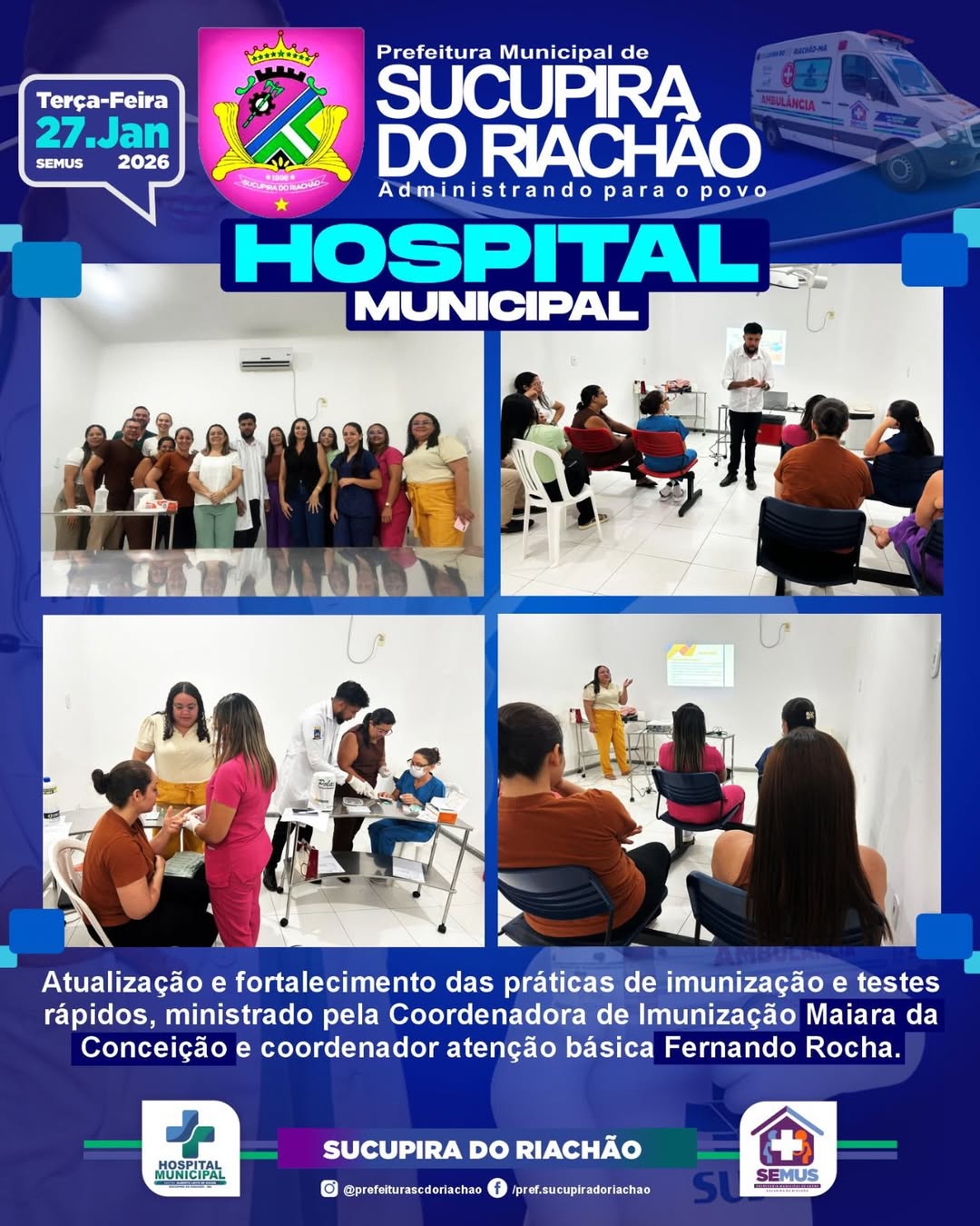 O Hospital Municipal de Sucupira do Riachão promoveu, nesta terça-feira (27), uma importante ação de atualização e fortalecimento das práticas de imunização e da realização de testes rápidos, reafirmando o compromisso do município com a qualidade e a eficiência no atendimento à população.