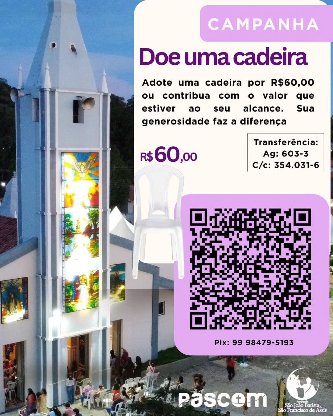 A Paróquia São João Batista e São Francisco de Assis, em São João dos Patos, iniciou uma campanha solidária com o objetivo de garantir mais conforto e acolhimento aos paroquianos durante as celebrações. Com o tema “Doe uma cadeira”, a ação busca mobilizar a comunidade para a aquisição de novos assentos para a igreja.
