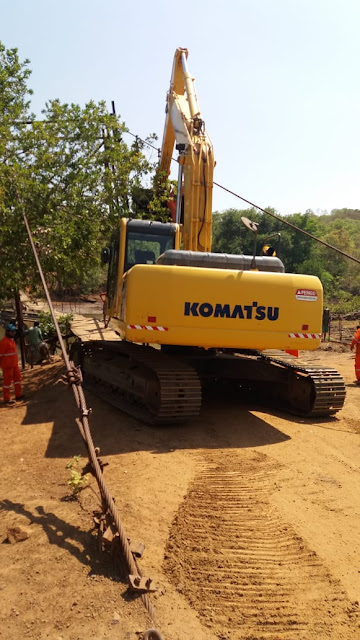 As máquinas da empresa responsável pela construção da obra chegaram na manhã desta quinta-feira onde já iniciaram os primeiros trabalhos de demarcação do pátio canteiro da obra além da limpeza do terreno.