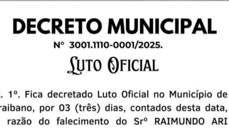 Paraibano decreta luto oficial de três dias pela morte do ex-prefeito Raimundo Ari Furtado