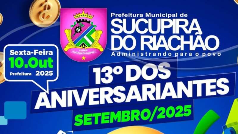 Prefeitura de Sucupira do Riachão anuncia pagamento do 13º dos aniversariantes de setembro