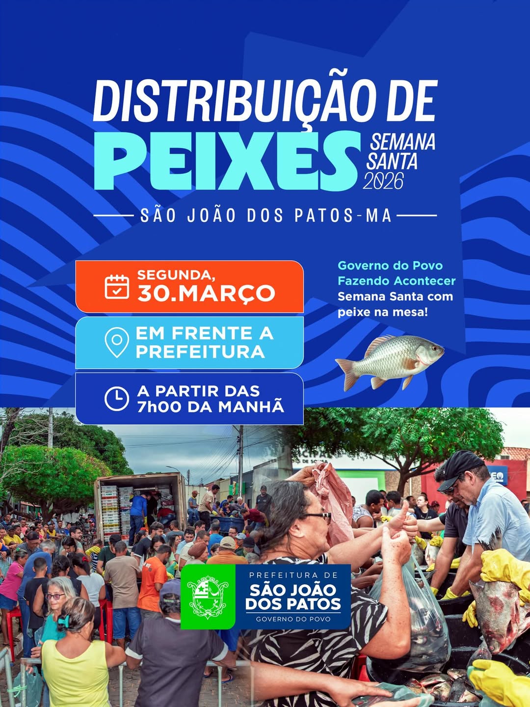 A Prefeitura de São João dos Patos mantém viva uma das tradições mais importantes do calendário social do município: a distribuição de peixes durante a Semana Santa. A ação, coordenada pela gestão do prefeito Dr. Alexandre Magno, tem como objetivo garantir alimento na mesa das famílias, especialmente aquelas em situação de vulnerabilidade.