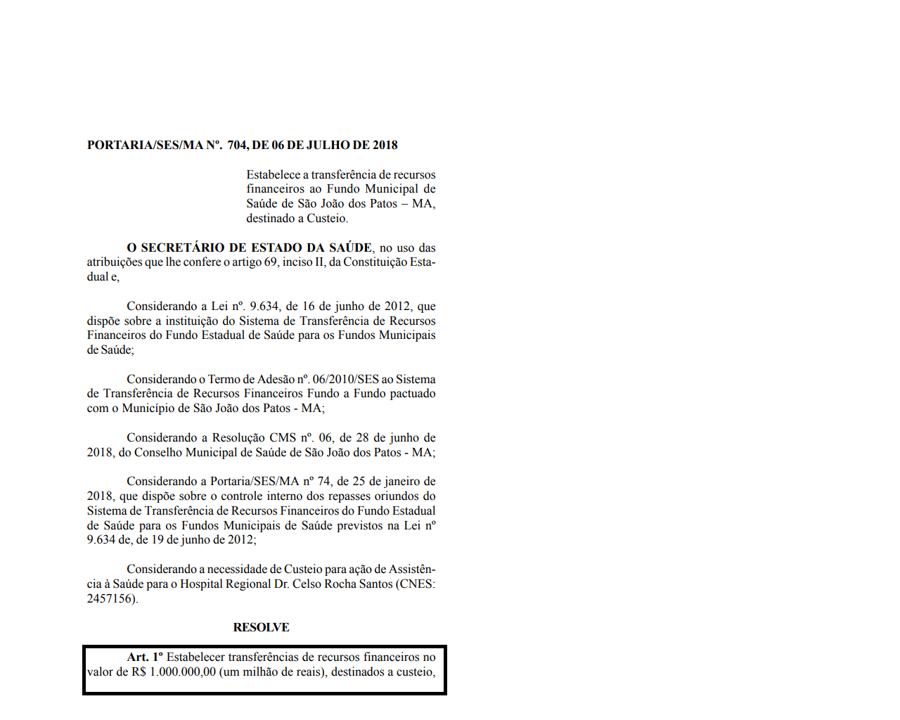 REPASSE DE 1 MILHÃO PARA O HOSPITAL REGIONAL DE SÃO JOÃO DOS PATOS ATÉ AGORA NÃO FOI PAGO PELO GOVERNO DO ESTADO