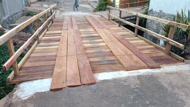 Repórter Gilmar Corrêa mostra reconstrução da ponte de madeira na Rua Almirante Barroso; prefeitura projeta obra defi...